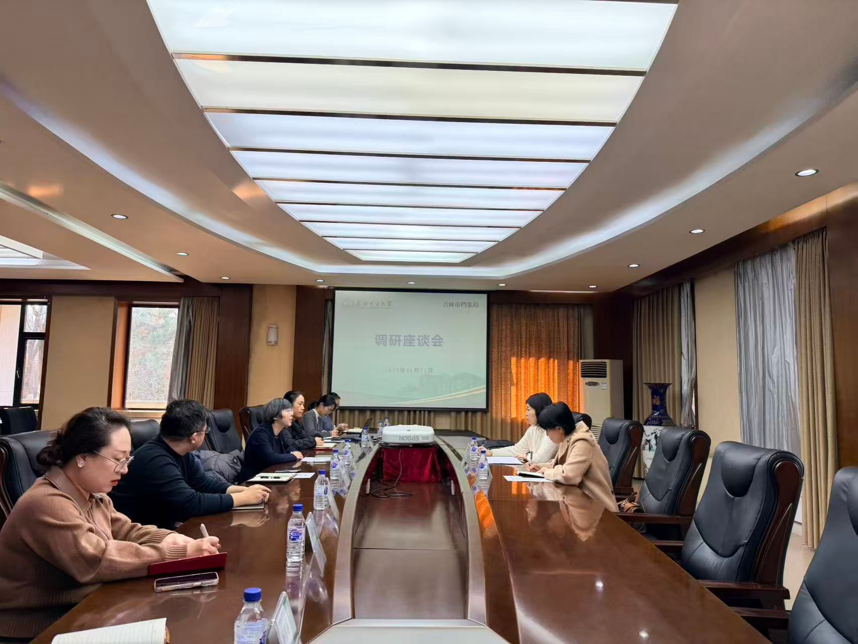 11月11日,中共吉林市委办公室(吉林市档案局)档案监督指导处副处长渠胜蓝、市档案馆综合处处长张琪一行莅临我校档案馆,就“十五五”档案事业发展规划开展专题调研。调研座谈会在学术中心第三会议室召开,由档案馆副馆长胡脩实主持,馆长苏晓玲及全馆工作人员参加会议。
